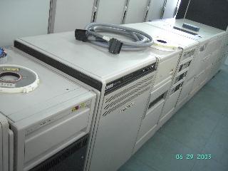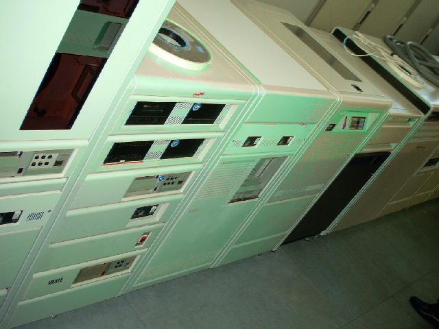 Der Maschinenraum ist das Herzstück des Museums - alle (augenblicklich aufgrund von Zeitmangel zumindest die meisten) dort installierten Systeme sind betriebsbereit beziehungsweise auf dem besten Wege dorthin. Obwohl der Schwerpunkt der Sammlung auf Systemen der Firma DIGITAL Equipment Corporation (mittlerweile HP) und hier vor allem auf VAX- und Alpha-Systemen liegt, sind auch andere Systeme, wie eine IBM S/390, eine IBM SP/2, HP-9000 und HP-3000 Rechner und viele andere vertreten. Im folgenden finden sich einige Panoramaaufnahmen (vielen Dank an Carsten Kress, der sie angefertigt hat) des Maschinenraumes sowie eine Reihe von Detailaufnahmen. Eine mehr oder minder (aufgrund des Zeitmangels mehr minder) vollständige Liste des Systeme findet sich hier. |