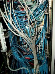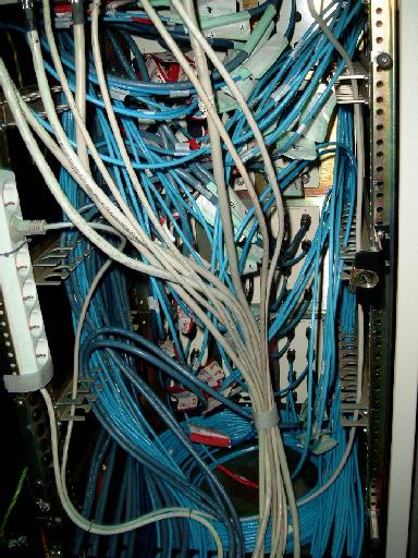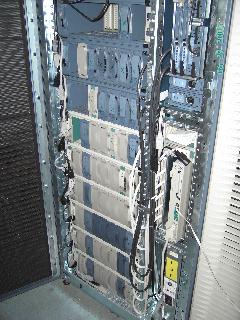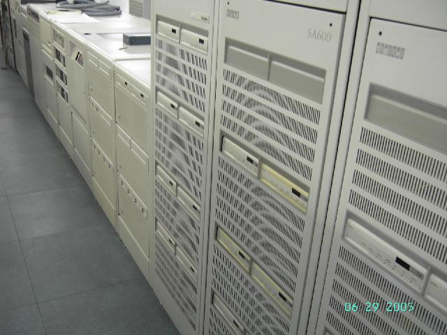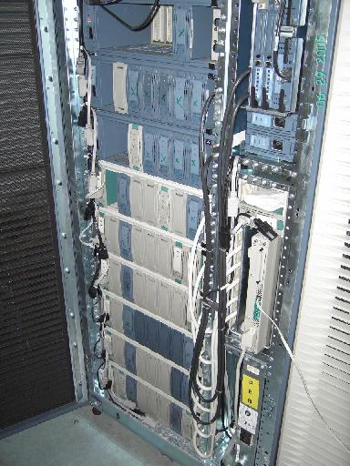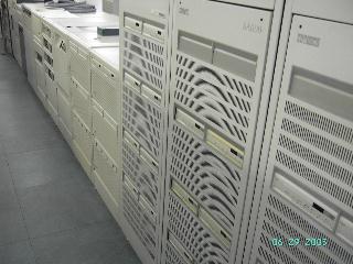Die letzte Aufnahme zeigt auf der einen Seite zwei PDP-11 Systeme (eine PDP-11/44 - früher mein zentraler Server zuhause - sowie eine PDP-11/34), gefolgt von einigen AlphaServer-2100 Systemen, sowie dem zentralen Konsolserver (der bereits erwähnten VAX-4000/200). Daneben findet sich der zentrale Netzwerkschrank, bestückt mit einem DEChub-900, sowie einem Gigaswitch, einem Hirschmann-Sternkoppler, einer MicroMAU, etc. Auf der anderen Seite sind ein großes Plattensystem von EMC, ein vollständiges IBM RAMAC-2 Plattensystem, die IBM S/390 sowie die IBM SP/2 zu sehen. | The last picture shows two PDP-11 systems (one PDP-11/44 - in former times my central server at home - and a PDP-11/34), followed by some AlphaServer-2100 systems and the central console server (a VAX-4000/200). Next to this is the rack which houses most of the network equipment, a DEChub-900, a Gigaswitch, a Hirschmann starcoupler, a MicroMAI, etc. On the other side is a large EMC disk subsystem, a complete IBM RAMAC-2 disk subsystem, the IBM S/390 and the IBM SP/2. |