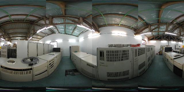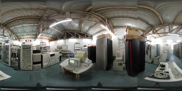 The computer room is the heart of the museum. All of the systems (due to my lack of time it should read "nearly all") installed there are ready to be powered up and booted. Although the main focus of the collection (and my interest) is on systems from DIGITAL Equipment Corporation (now HP) and here especially on VAX- and Alpha-systems, there are lots of other computers, too: A wonderful IBM S/390, an IBM SP/2, HP-9000 and HP-3000 systems and many, many more. In the following you may find some panorama views (I would like to thank Carsten Kress for taking these pictures) of the machine room as well as some more detailed photographs. A more or less (due to my lack of spare time more less) complete list of the systems in the collection may be found here. |