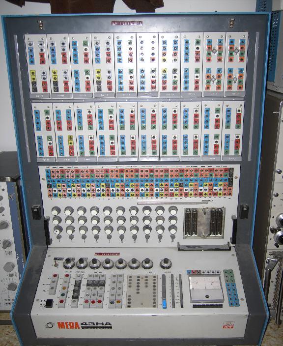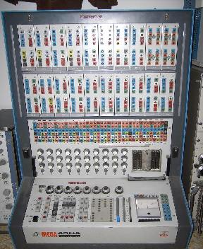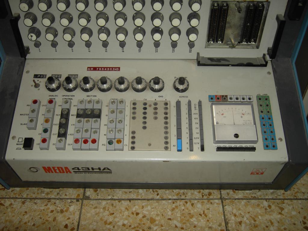 The MEDA 43 is one of the latest analog/hybrid computers built in the former czecholovakia. It is the last member of the MEDA series which found widespread use in many countries behind the iron curtain. The machine shown above dates back to the late 1970s, it seems quite reasonable to assume that the computer was built in 1977 - this should be kept in mind when comparing this system with is quite low packing density to older systems like the Telefunken RA 741 which was designed and build about 15 years earlier! The pictures in the following were taken from actually two systems which were donated by Mr. Manfred Kindler which I would like to thank for those two machines. They were taken care of by Prof. Hebestreit from the university of Leipzig where we picked them up on 11-JUL-2006. |
