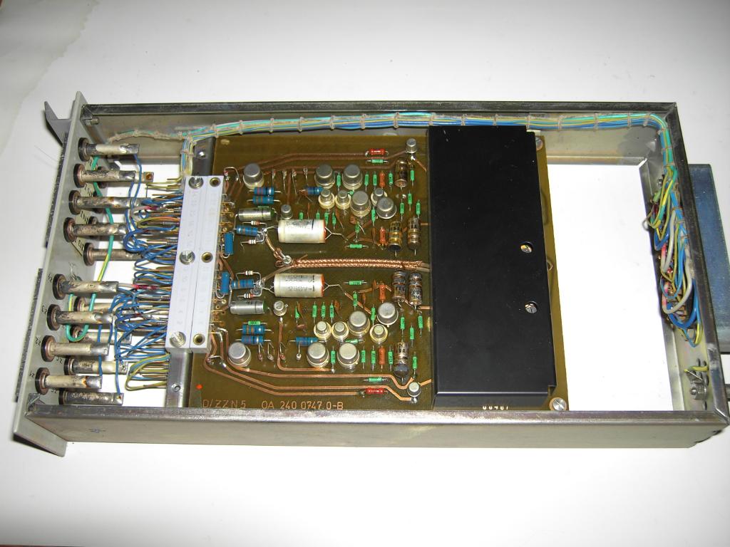 The following pictures show top, bottom and front view of the TZP11 module which contains a pair of wideband amplifiers which are mainly used to setup integrators using the integrator capacitors shown above. |