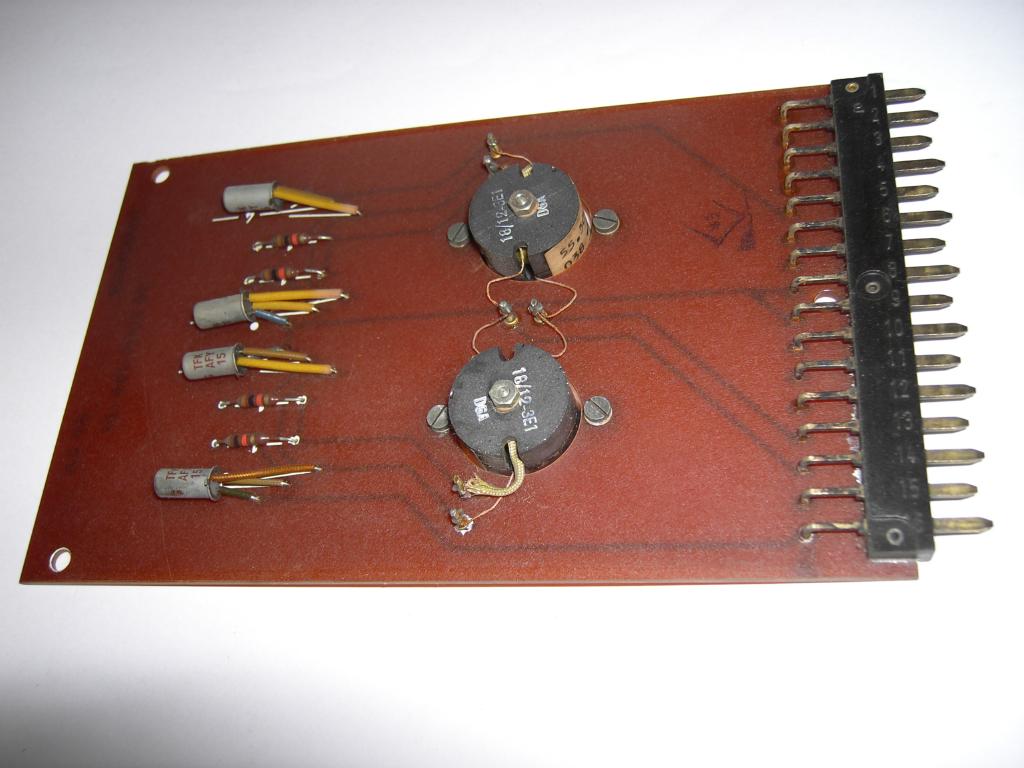 The two last pictures show one of the two electronic analog switches used to switch between X1/Y1 and X2/Y2 (on the right) and the control card with the necessary circuitry for controlling the two electronic switches and the blanking of the electron beam. |