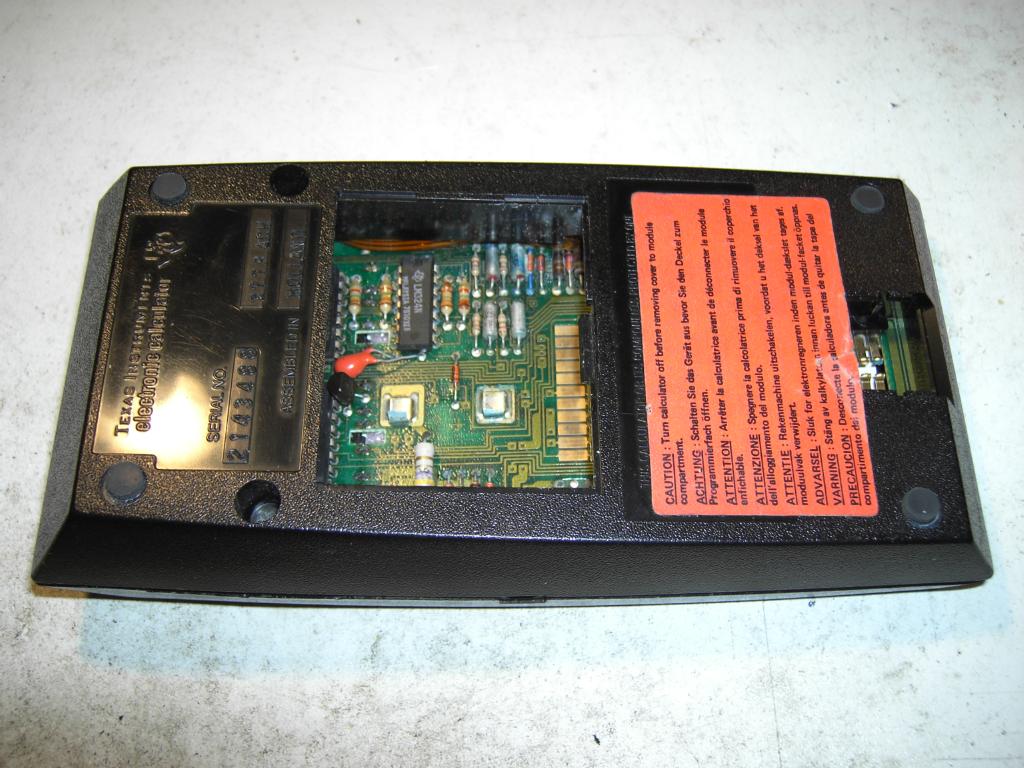 In addition to the extreme number of built-in functions, the TI-59 featured so called solid-state modules - exchangeable ROM modules which were placed in a special socket under a cover on the rear of the calculator. |