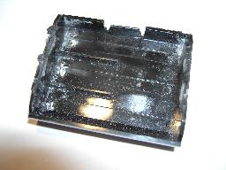 The picture on the right shows the now empty plastic battery holder without the two center restrainers which I had to cut to remove the original batteries. This enclosure will be used as a housing for a more modern NiMH battery pack with 2300 mA/h thus making up to ten hours and more of continuous operation of the TI-59 possible. |