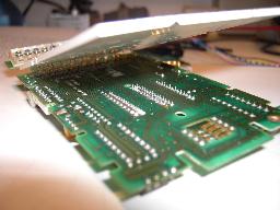 The picture on the left shows the extracted main board with the keyboard attached. Do not attempt to remove the plastic sheet from the keyboard (do not even think about it). The whole contraption is quite fragile, so be very careful. |