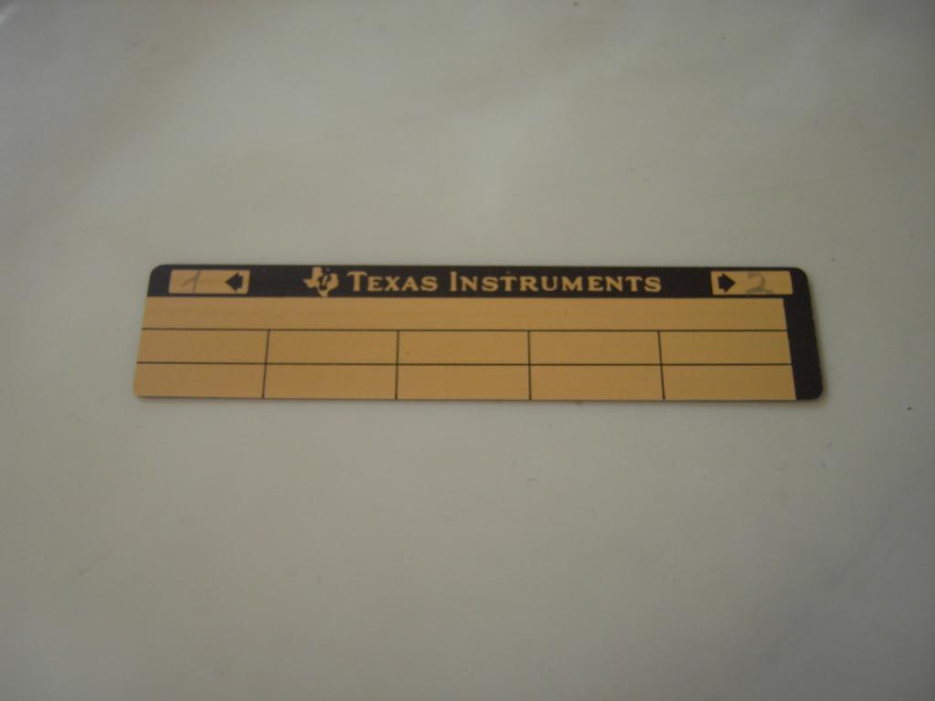 Magnetic cards: One of the most important features of the TI-59 is its built-in magnetic card (strip) reader/writer which allows to store 240 bytes on each of its two sides, so the total memory of a TI-59 can be stored on two magnetic cards and reread whenever necessary. This allows permanent program storage and encouraged a lot of people and companies to develop specialized programs and distribute them by means of prerecorded magnetic cards. |