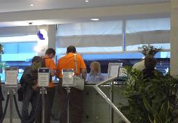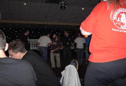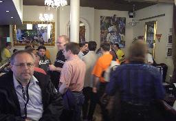 In a near by restaurant the early arrivers party took place - we got our badges (Thomas can be seen on the far left - he looks a bit angry, why?). |