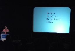 The next morning began with the opening lecture delivered by Larry Wall. |