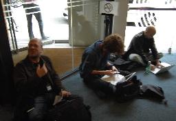 Back in the hotel lobby we spotted some conference attendees - programmers are mostly quite easily detected. :-) |