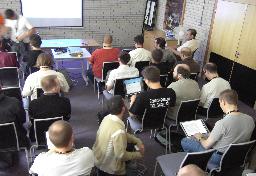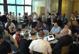 A typical scene from a pause between talks - everybody is hacking along... :-) |