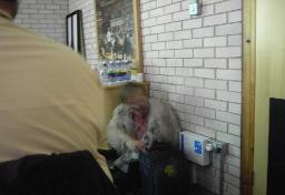 When Thomas and I left our rooms to get some food, it started to rain instantly - not a smooth rain, no - a nasty, windy, wet, just plain horrible rain... :-) We found shelter in an Australian burger place. |