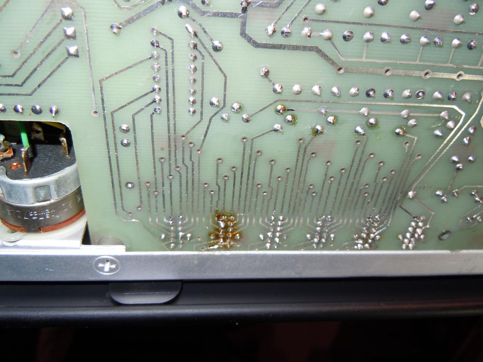 Thus it was clear that the fault was somewhere located in the Nixie tubes themselves or their surroundings. After removing some mounting material I saw that one of the tubes already had been replace some time ago. Of course, I suspected a short in this area but using an Ohm meter nothing was to be found. No shorts, nothing... I was puzzled. Only after some minutes I remembered having seen strange things in conjunction with excess Colophonium in high voltage circuits many years ago. Believe it or not, but cleaning the dark area below the replaced tube cured the problem once and for all. |