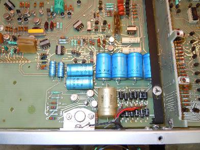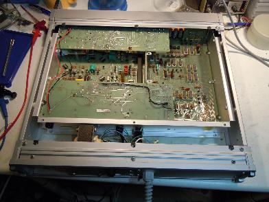 Since I did not have a suitable power cable for this device I decided to install a fixed power cord which turned out to be fairly simple since this particular Fluke 8300A did not have the digital readout and remote control features installed, so about half of its back cover was empty and I used this space for the new power cord which can be seen in the picture on the right in the bottom middle. Using this new power cord, I switched the device on for the first time since I got it (using an isolating transformer, of course). What happened? Nothing - the display did not light, but on the other hand no smoke, no dying electrolytic capacitors, so it could have been worse. |