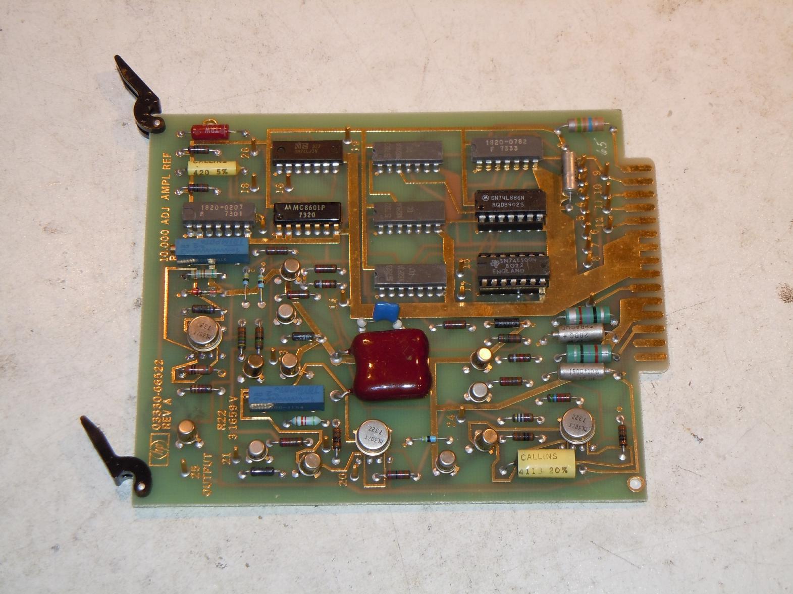 Unfortunately this was not the last error - there was no output signal at all from the synthesizer! Tracing the various signals that are used to drive the synthesizer it turned out that the problem was in the amplitude control circuit, something I was and still am quite glad about since this part of the circuitry uses mostly standard parts and should be easy to repair, or so I thought. The amplitude control is quite interesting - there are four BCD coded digits used for amplitude control. The most significant digit controls a relay based attenuator which worked correctly as some measurements showed. The three remaining digits control a digital analog converter which in turn delivers an analog control voltage for the fine grain amplitude control. The picture on the right shows this board, A26. Repairing A26 caused some of my hair to get grey, I think. |