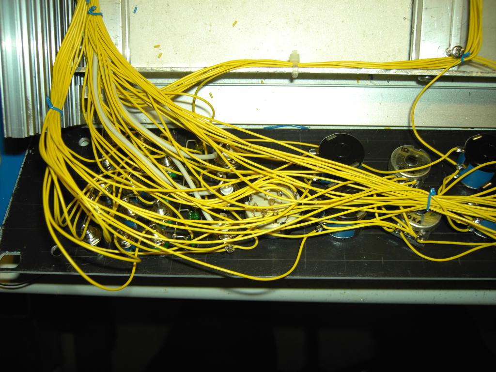 The pictures above give an impression of the immense amount of cabling necessary to connect all of the front panel control elements to the remaining circuitry of the multiplexer. | |