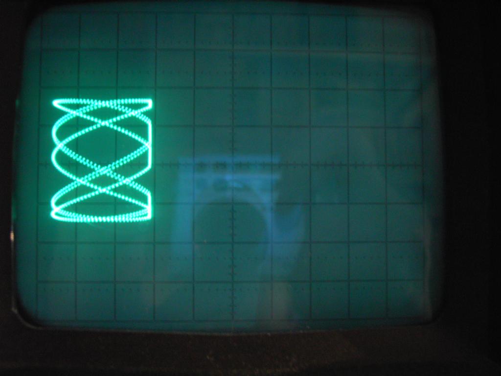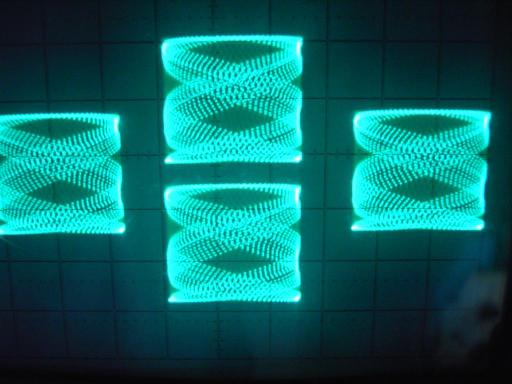 The four pictures above show the effect of the multiplexer with the channel number selector set to one, two, three and four channels respectively. Please note that the intensity of the picture does not vary with the number of channels displayed (due to a trick in the blanking logic :-) ).