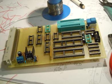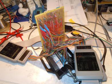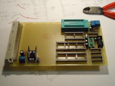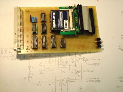 The picture on the left shows the completed IDE controller (which drove me nuts during debugging since I managed to handle the two select signals for the IDE devices incorrectly... *sigh*). |
